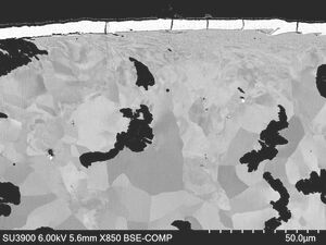 Das BSE-Bild wird daher auch oft als Materialkontrastbild bezeichnet und ermöglichst so Rückschlüsse auf die laterale Verteilung von verschiedenen Materialien bzw. Elementen auf der untersuchten Probe.